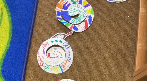 On Tuesday there was Art club after school. We used colouring pens to decorate snakes and then used our cutting skills to make them move. The children were brilliant at taking their time to create their patterns and we were so happy with the finished result!