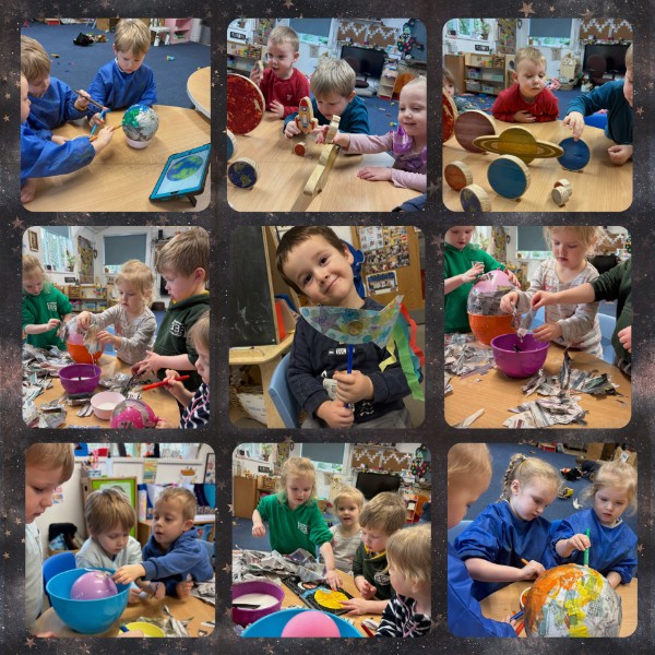 Once dry, the children had great fun painting their creations - bright yellow for the Sun, blue and green for the Earth, and soft greys and whites for the Moon. They were so proud to see them come to life and loved talking about what they had made.