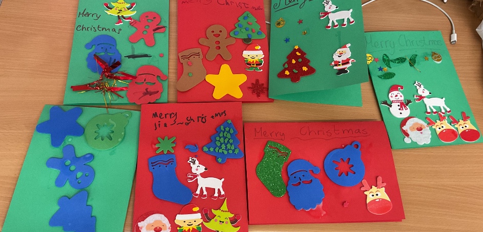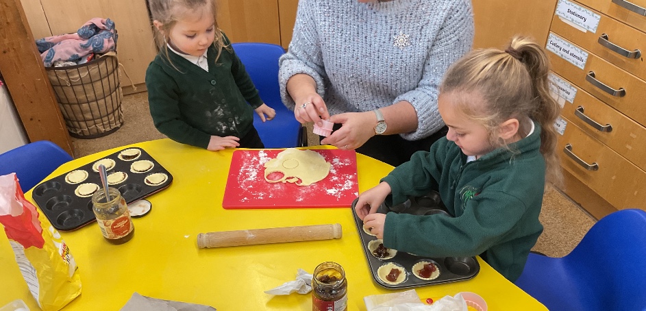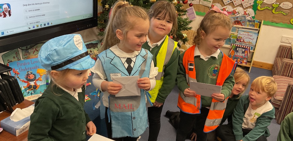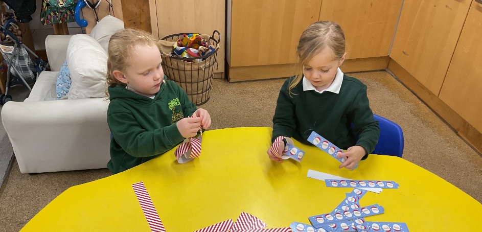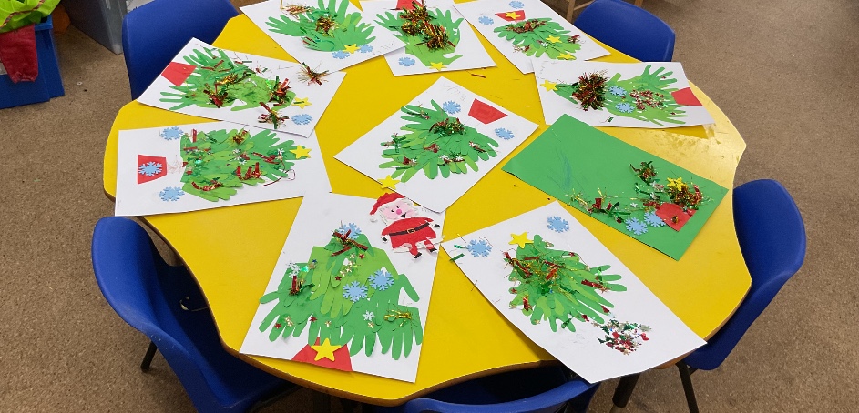 We've enjoyed a variety of festive activities over the last couple of months. We've made a variety of crafts such as; robins using recycled baubles, hand print Christmas trees with the help of our families, paper chains, bead baubles for the outdoor Christmas tree and Christmas cards for our families. We enjoyed Christmas dinner with the whole school and had a party in our class. We also all had a turn at delivering the Christmas cards around the school.