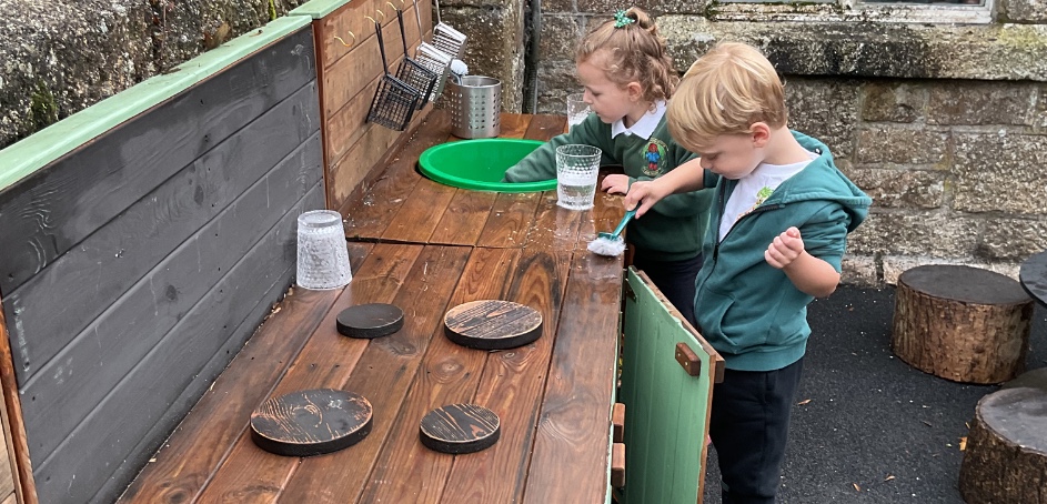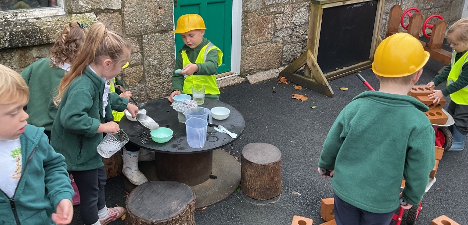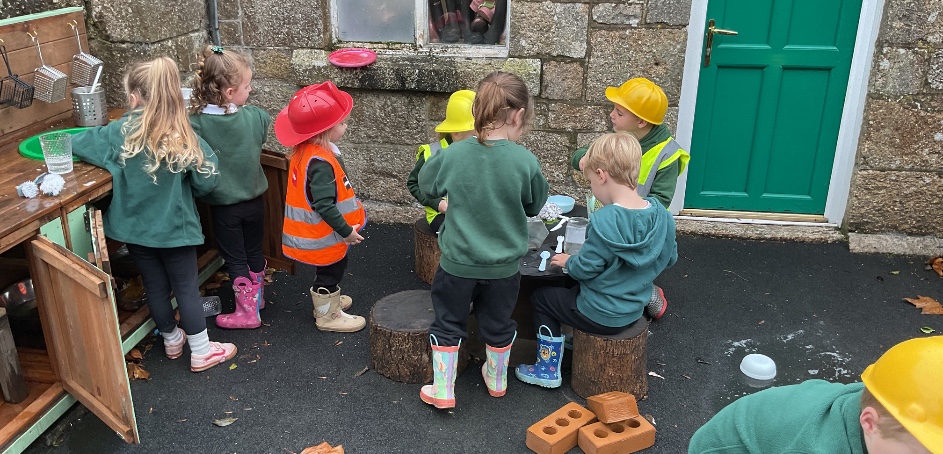 This week the children have been having fun with the new resources in the outdoor area. They have we had a cafe on the go with waiters and waitresses and a building site. The builders also took a 5 minute break to go and have tea and biscuits in the cafe.