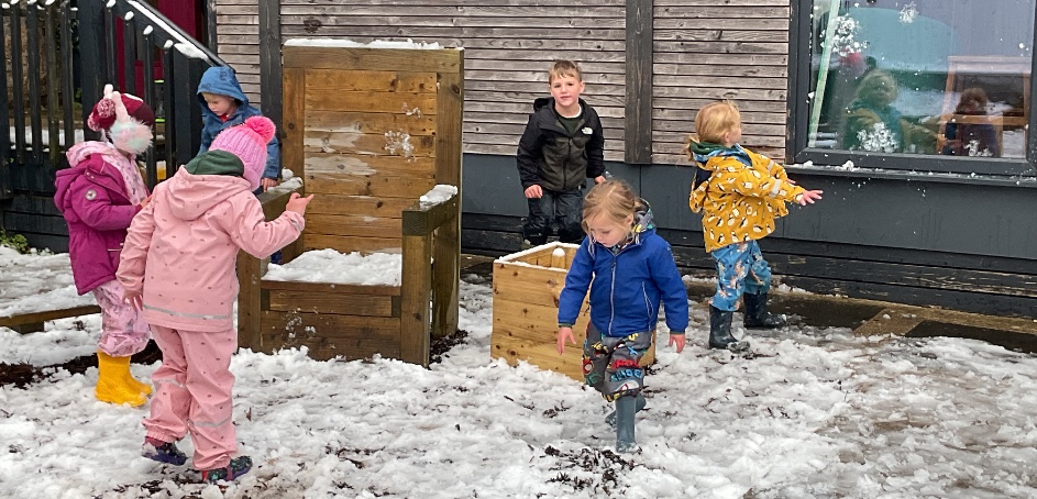We all enjoyed some time in the snow this week. We explored the snow in different places, built mini snowmen and had a snowball fight. We were a bit chilly after so we warmed up with a nice cup of warm milk.