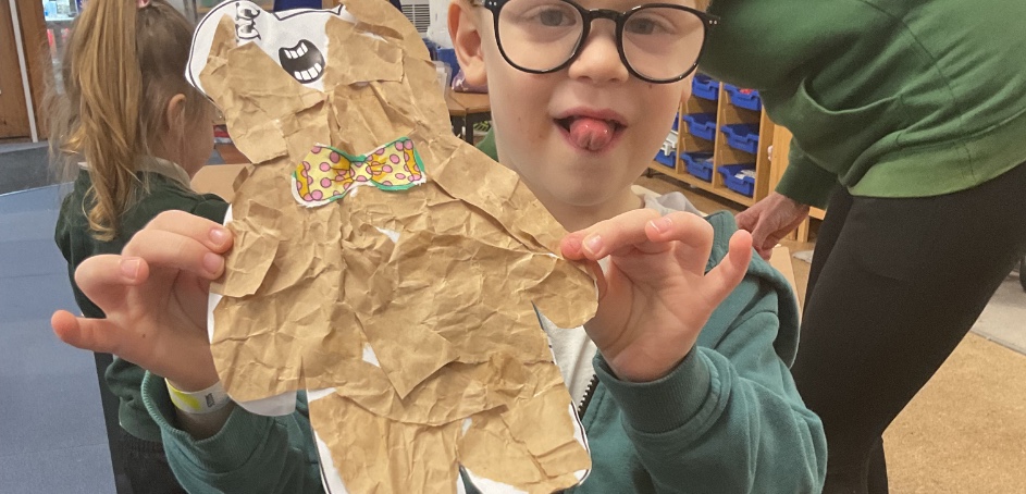The weather has given us a bit of an unsettled start to the term. We've gone from snow with later starts to the day and storms forcing us to close early. However in between we've managed to fit in lots of learning. Reception have been trying hard to improve their pencil control through drawing club and have created some lovely pictures linked to our class story 'The storm whale'. Our theme this half term is fairytales so we've started with 'Goldilocks and the three bears'. We've made collage bears and retold the story using props. Year 1 having been looking at different houses in DT and have designed and made a house for either a doll or an animal.